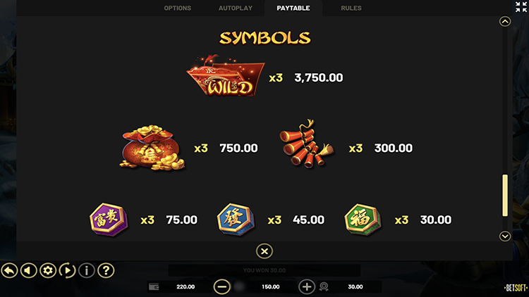 Таблица выплат Gold Tiger Ascent