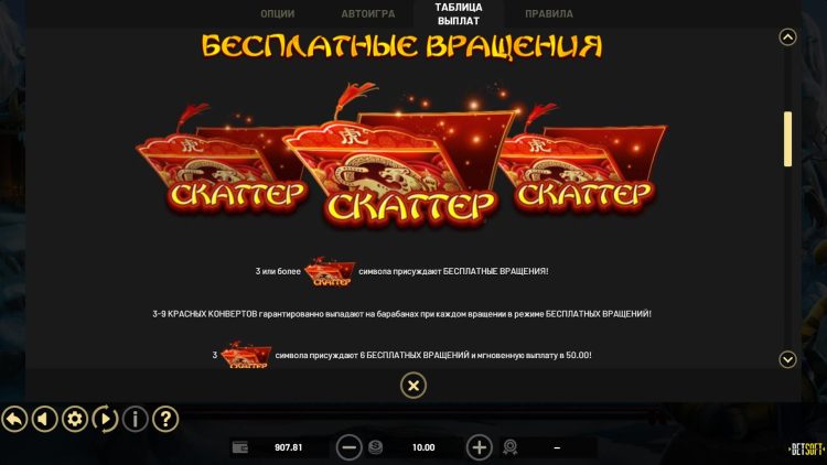 | Красный конверт (Scatter) | 750 | 1500 | 3000 |