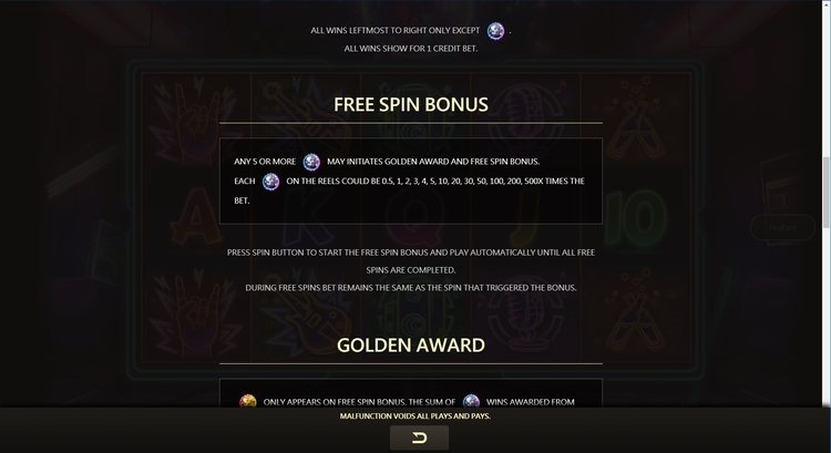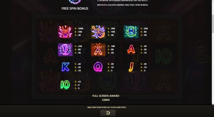Таблица выплат Golden Disco