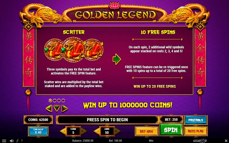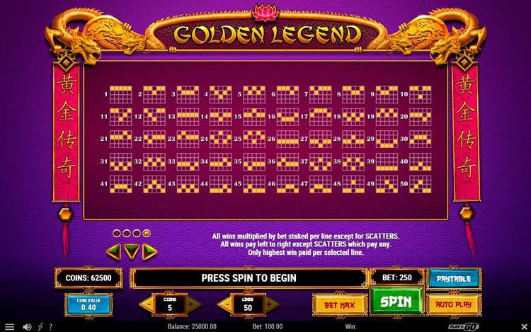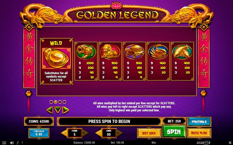 Таблица выплат Golden Legend