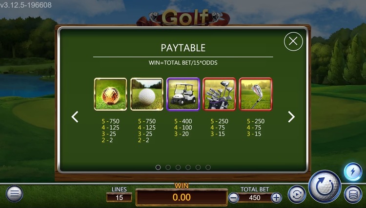 Таблица выплат Golf