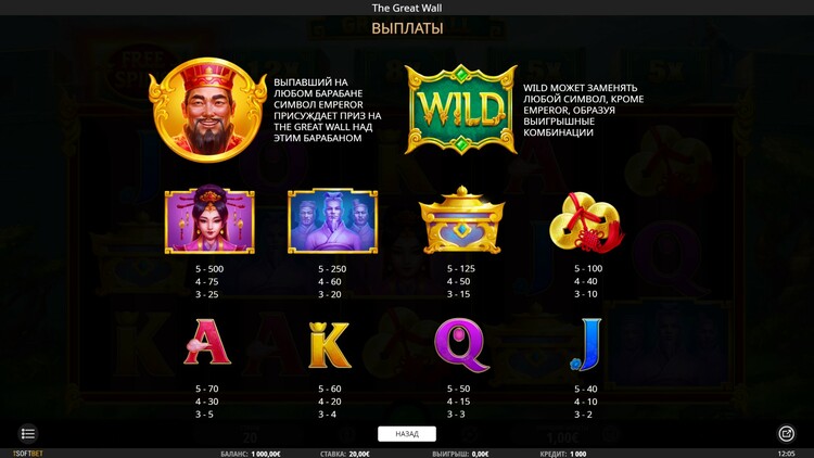 Таблица выплат The Great Wall