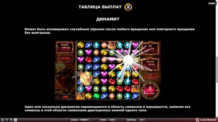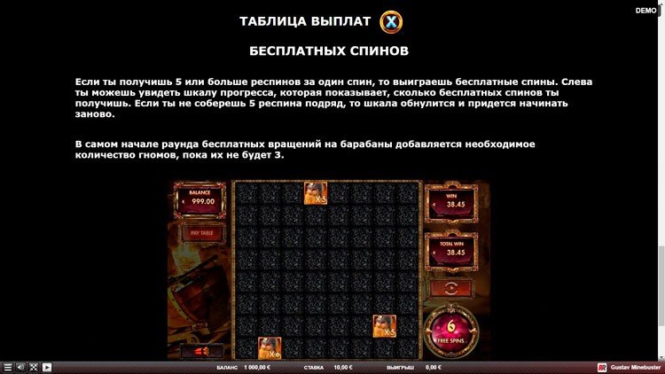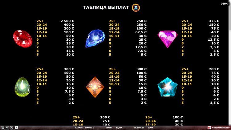 Таблица выплат Gustav Minebuster