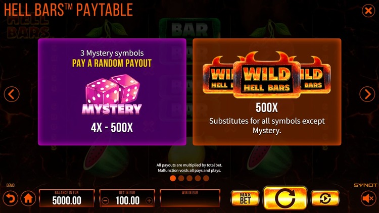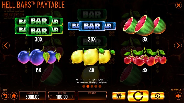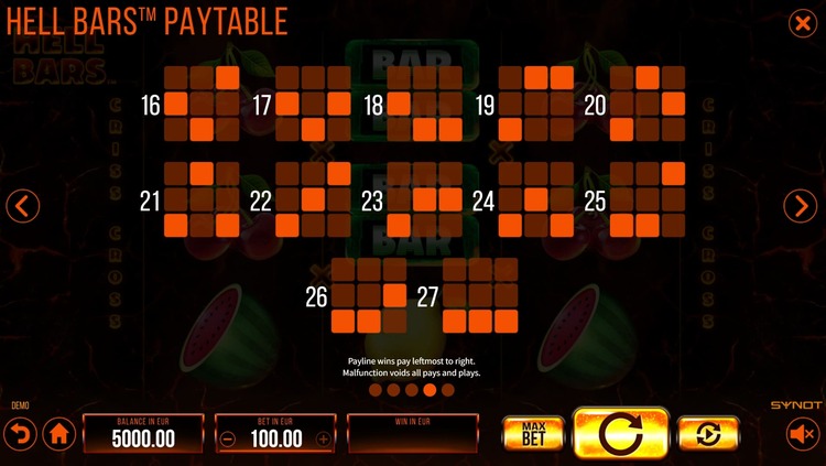 Таблица выплат Hell Bars