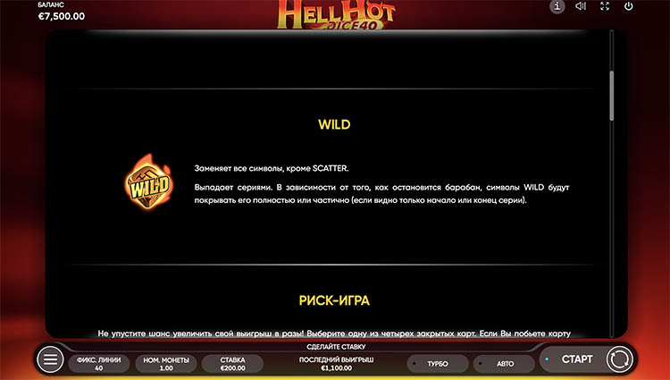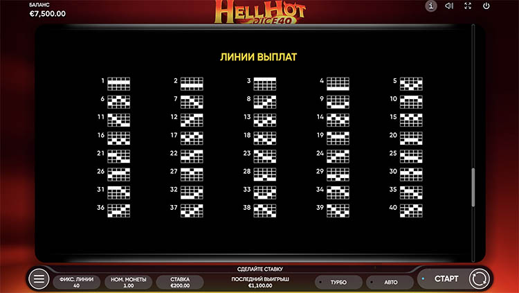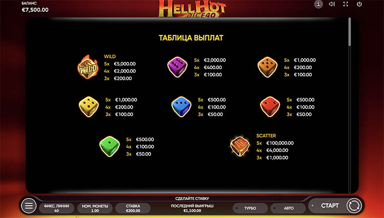 Таблица выплат Hell Hot Dice 40