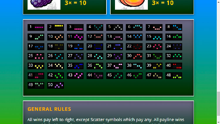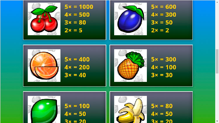 | Рог с фруктами (Wild) | 10 | 150 | 1 500 | 4 000 |
