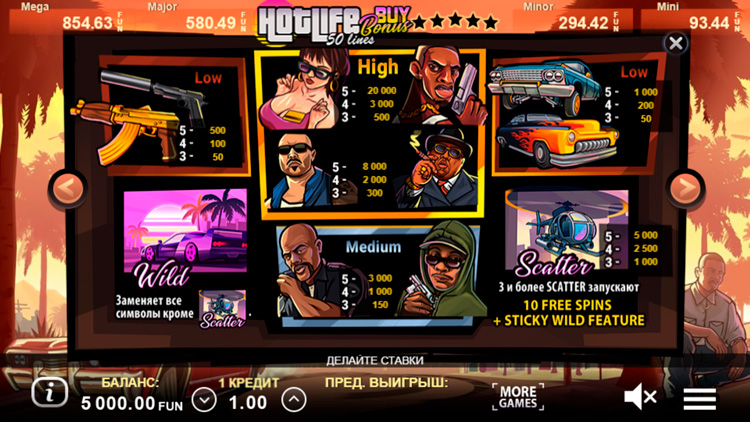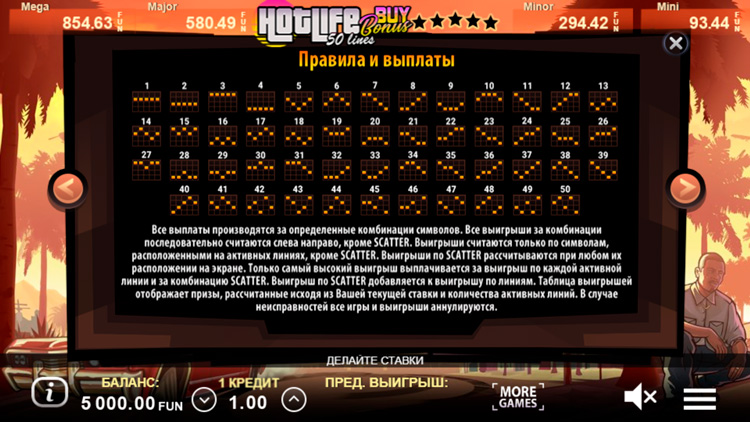 Таблица выплат Hot Life Buy Bonus