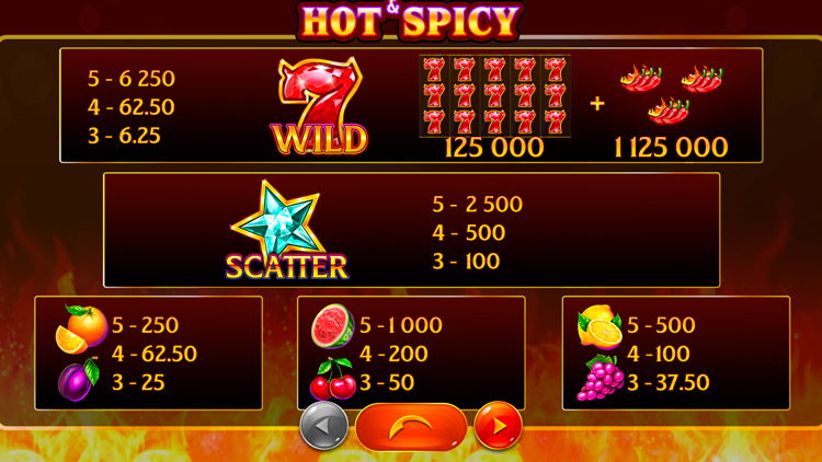 Таблица выплат Hot & Spicy Jackpot