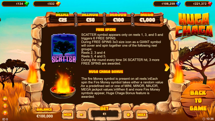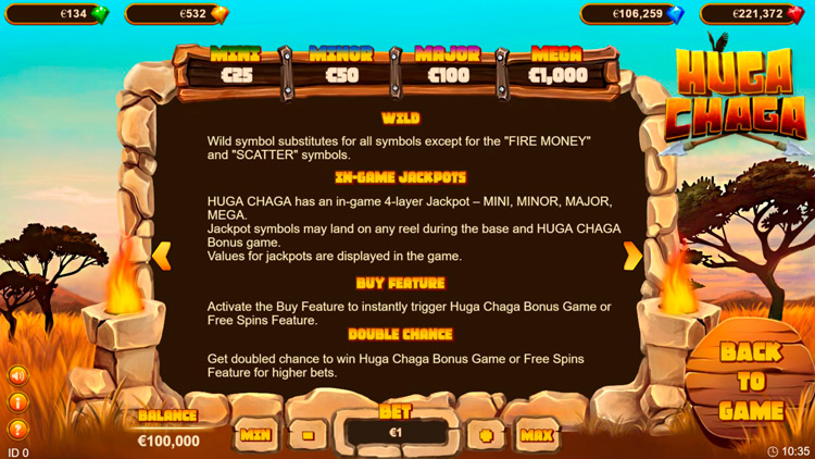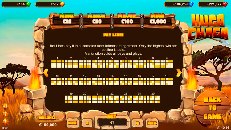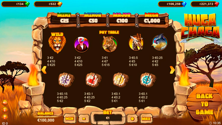 Таблица выплат Huga Chaga