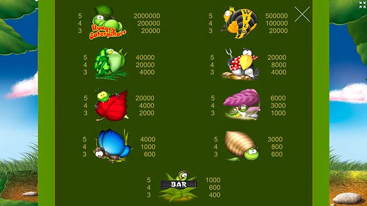 Таблица выплат Hungry Caterpillars