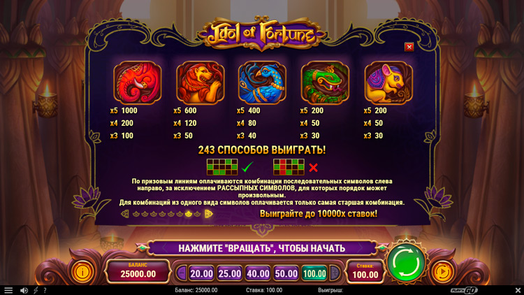 Таблица выплат Idol Of Fortune