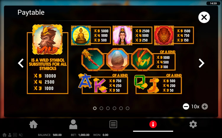 | Король обезьян (Wild) | 1 000 | 2 500 | 10 000 |
