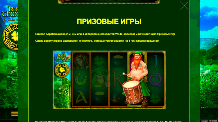 Дополнительные функции слота Irish Thunder: