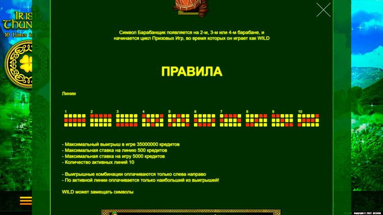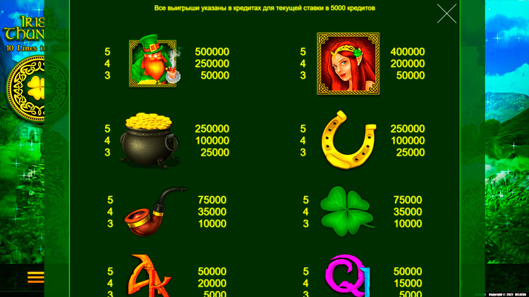 Таблица выплат Irish Thunder