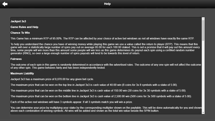 Таблица выплат Jackpot 3×3