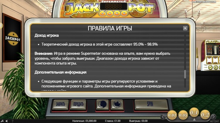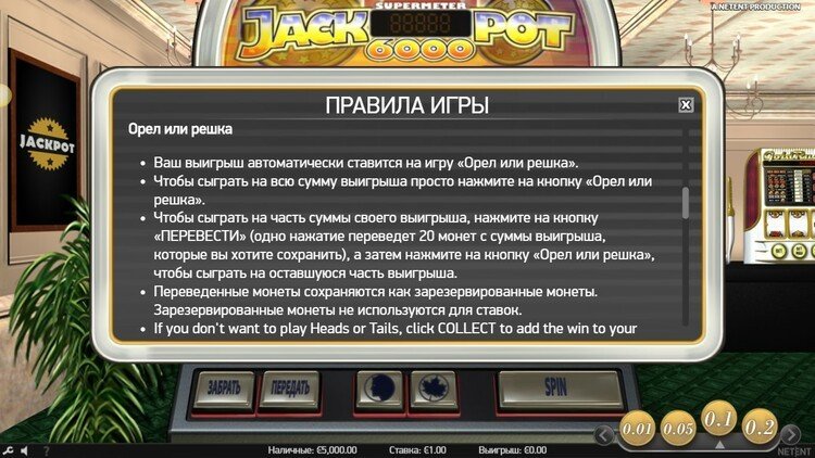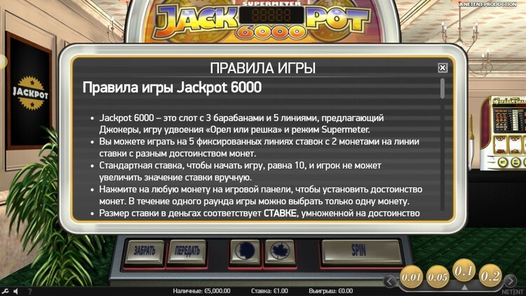 Таблица выплат Jackpot 6000