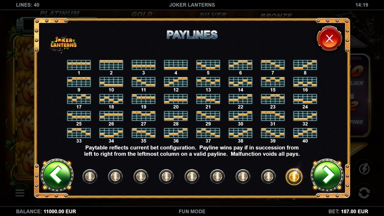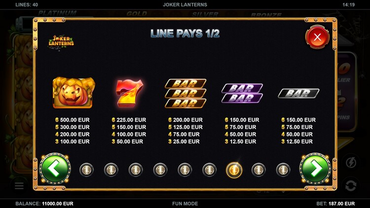 Таблица выплат Joker Lanterns