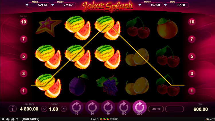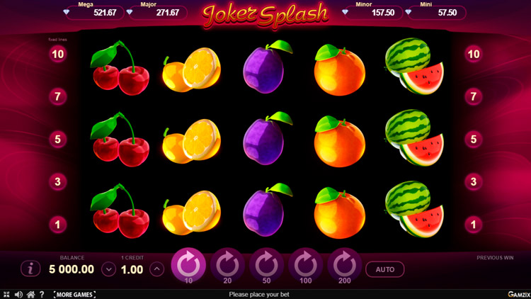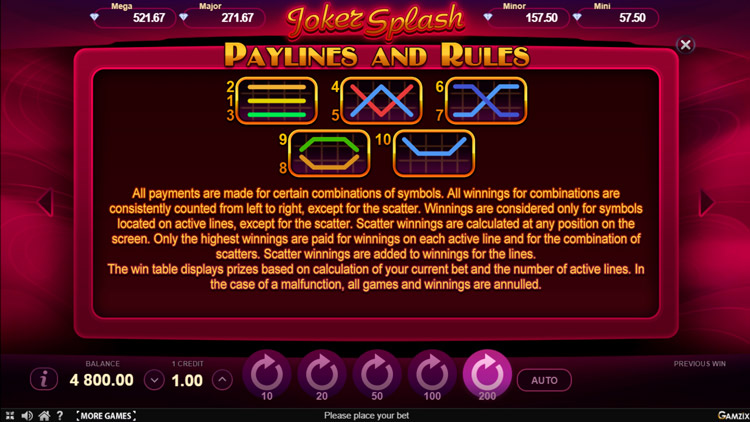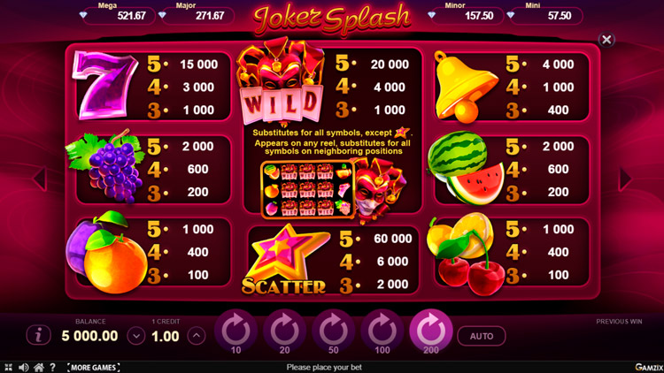 Таблица выплат Joker Splash