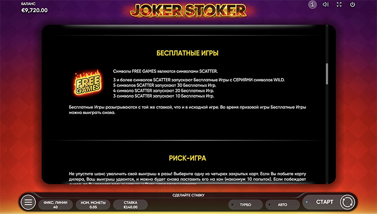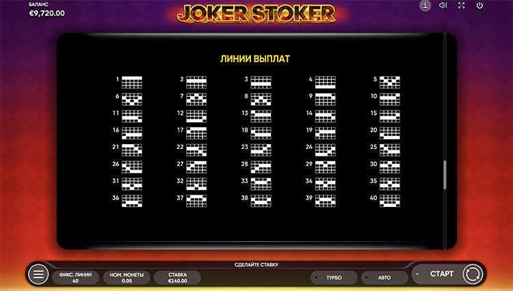 Таблица выплат Joker Stoker