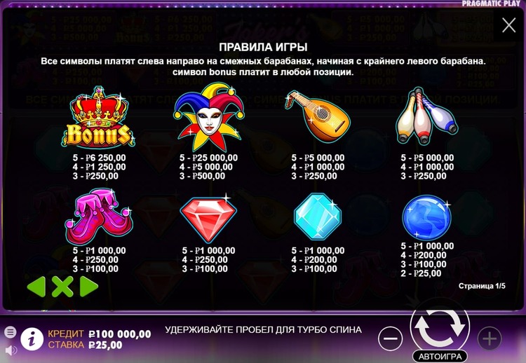 | Джокер | - | 500 | 5 000 | 25 000 |
