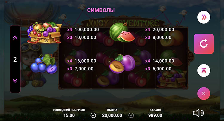 Таблица выплат Juice Adventure
