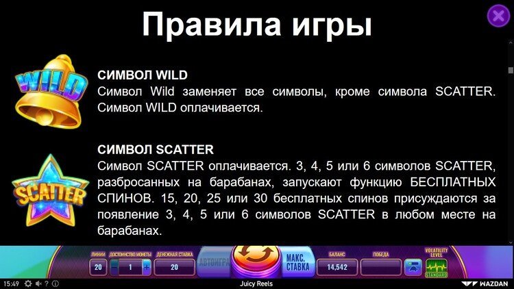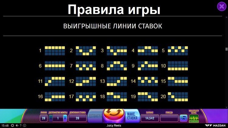 Таблица выплат Juicy Reels