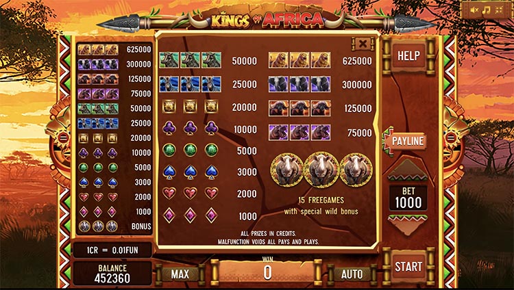 Таблица выплат Kings of Africa