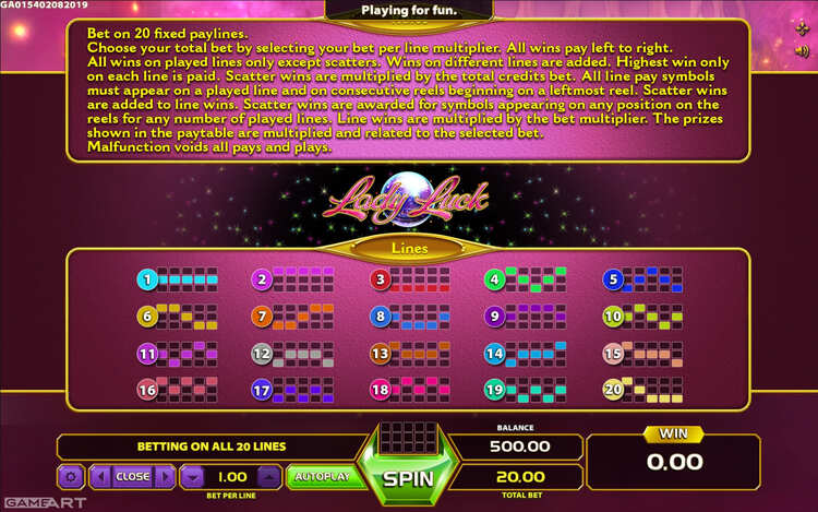 Таблица выплат Lady Luck
