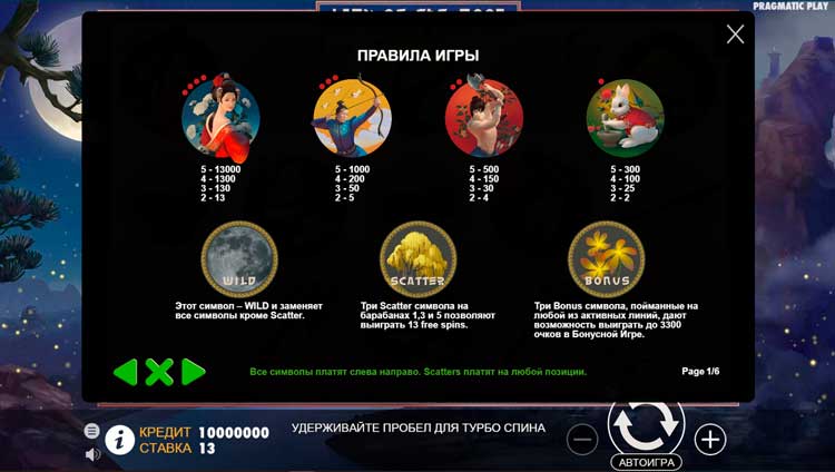 Таблица выплат Lady of the Moon