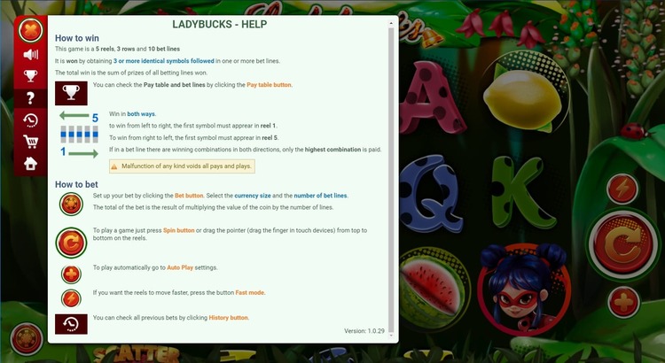 Таблица выплат Ladybucks