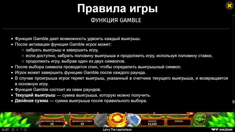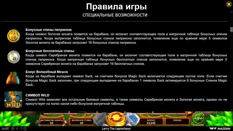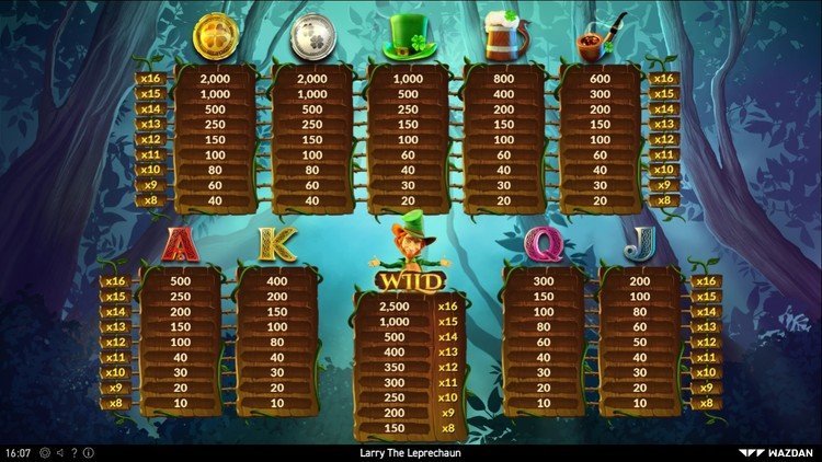 Таблица выплат Larry the Leprechaun