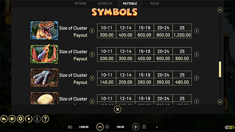 Таблица выплат Lava Gold