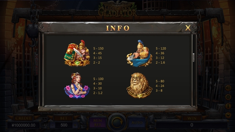 Таблица выплат Legendary Gladiator