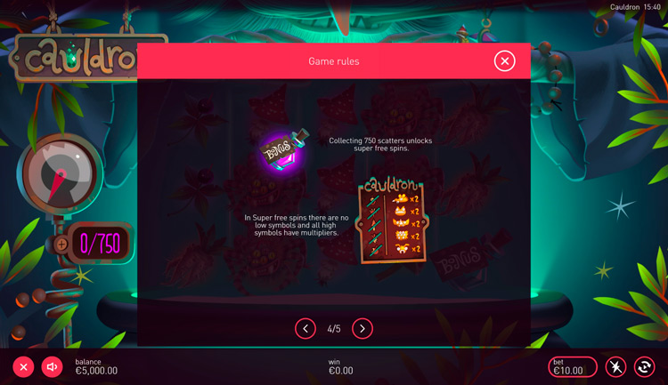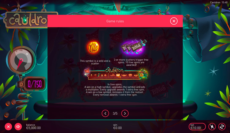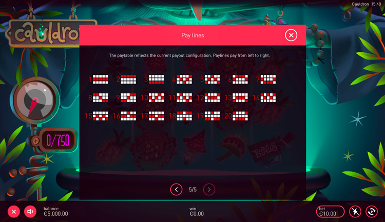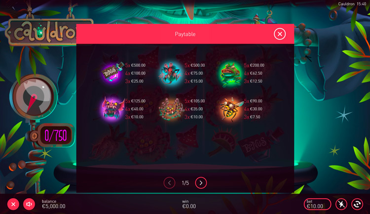 Таблица выплат Legends Cauldron
