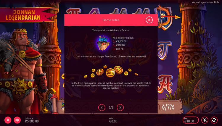 Таблица выплат Legends Johnan Legendarian