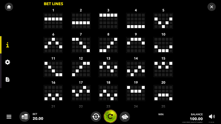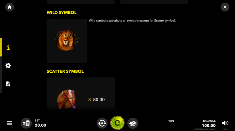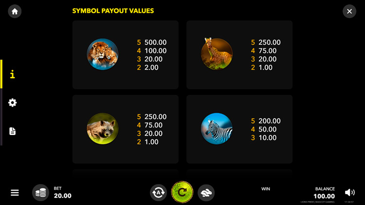 Таблица выплат Lion’s Pride