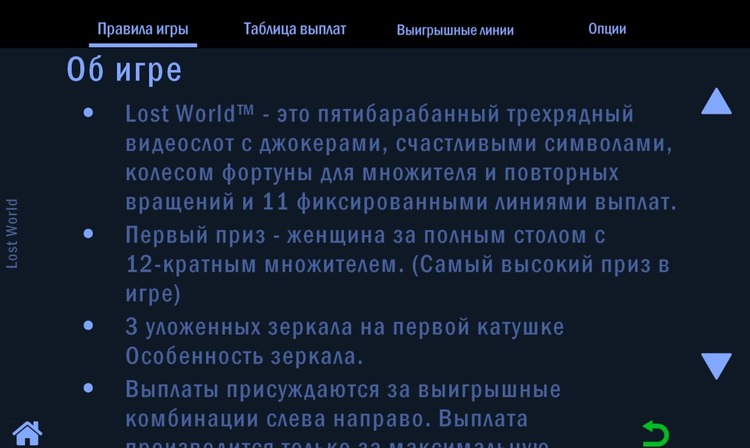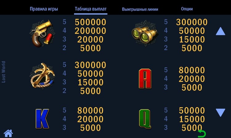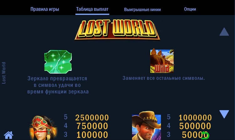 Таблица выплат Lost World