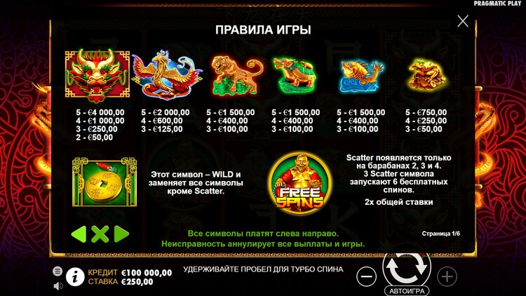 | Золотой дракон | 50 | 250 | 1 000 | 4 000 |