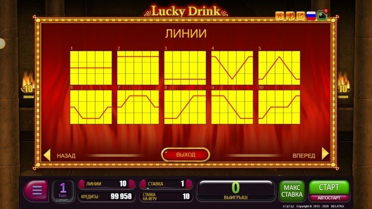 Таблица выплат Lucky Drink in Egypt