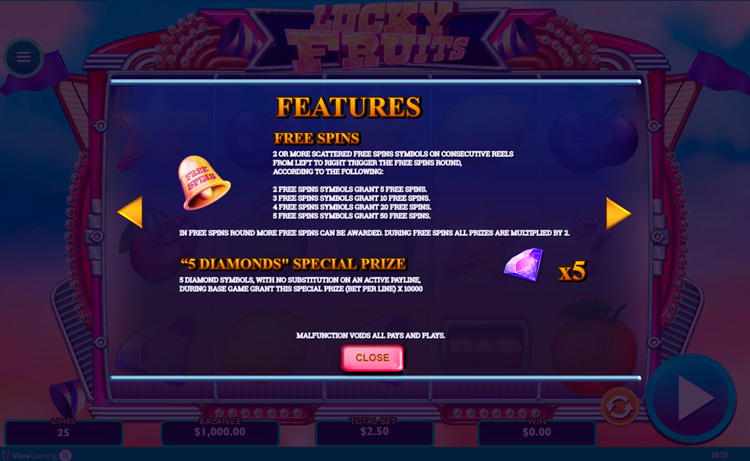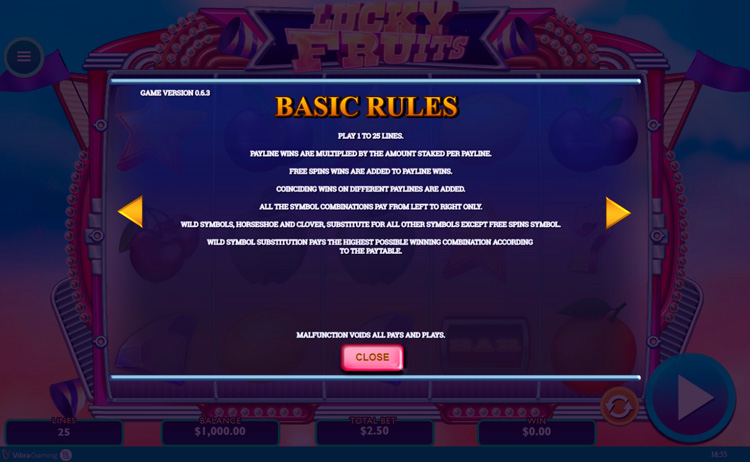 Таблица выплат Lucky Fruits