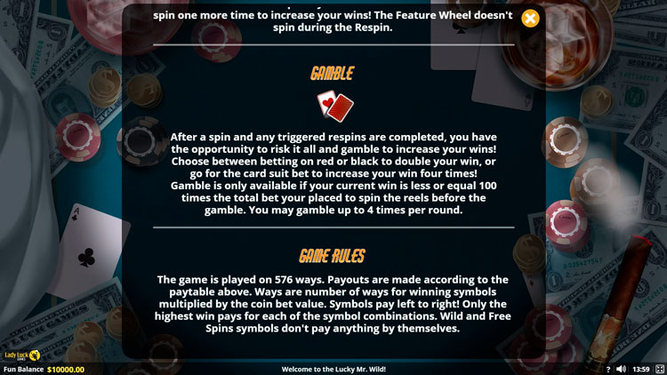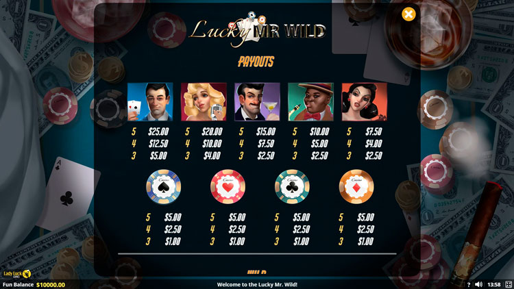 Таблица выплат Lucky Mr. Wild