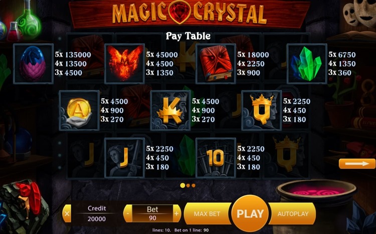 Таблица выплат Magic Crystal