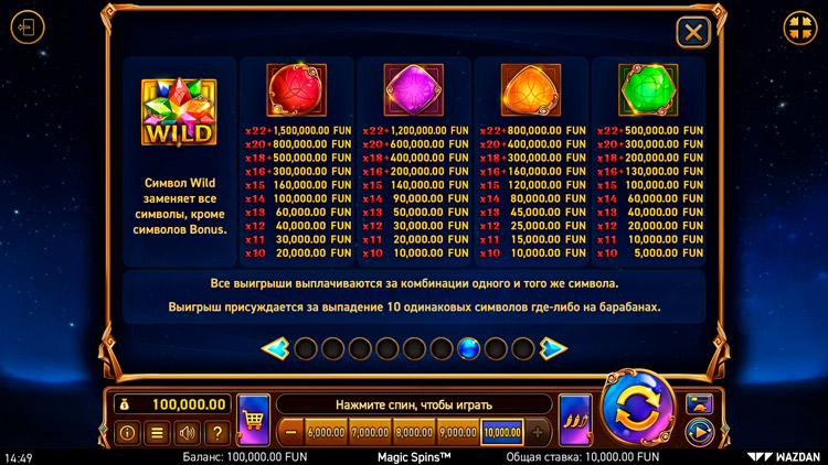 Таблица выплат Magic Spins