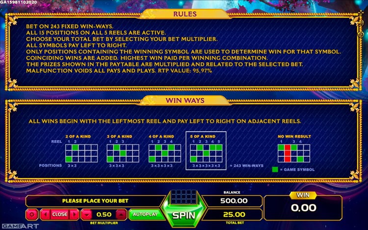 Таблица выплат Magic Unicorn