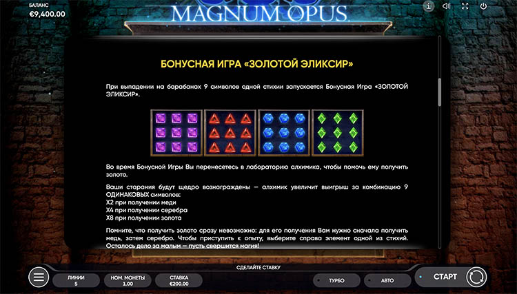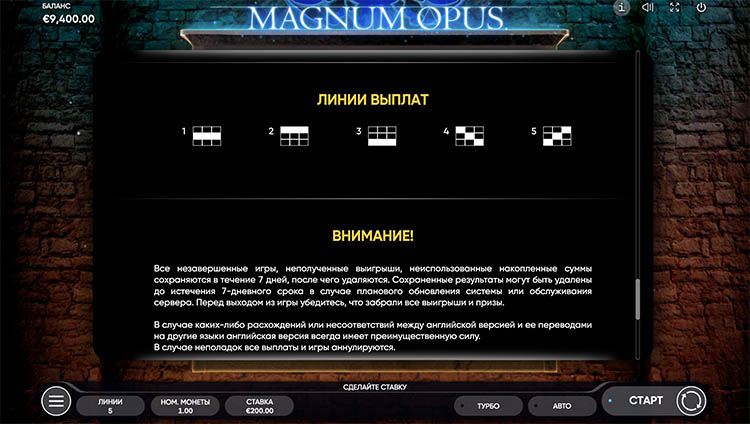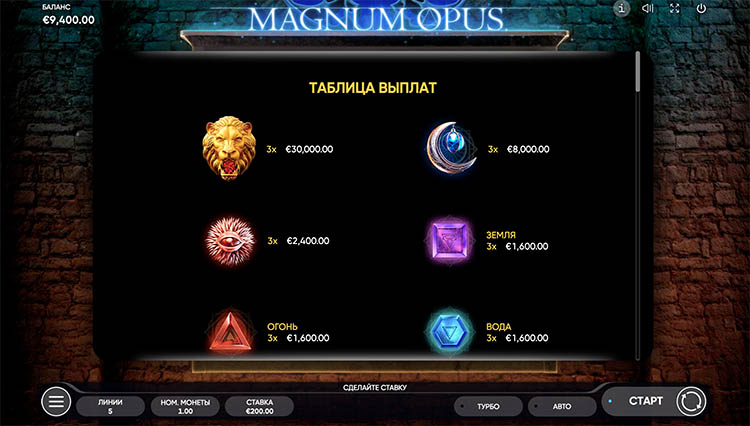 Таблица выплат Magnum Opus