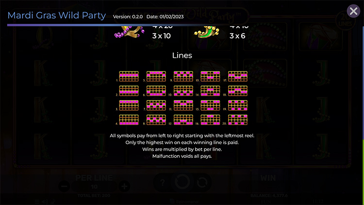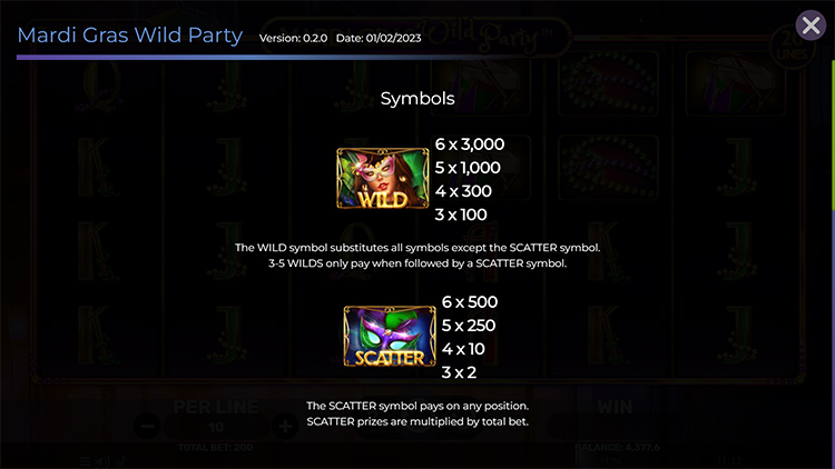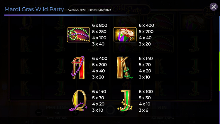 Таблица выплат Mardi Gras Wild Party