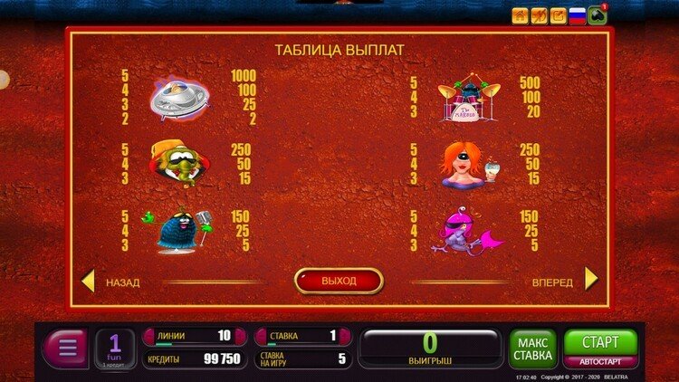 Таблица выплат Marswood Party
