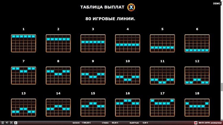 | Мата Хари | 30 | 60 | 300 | 3000 |