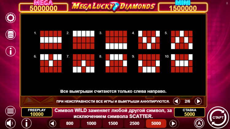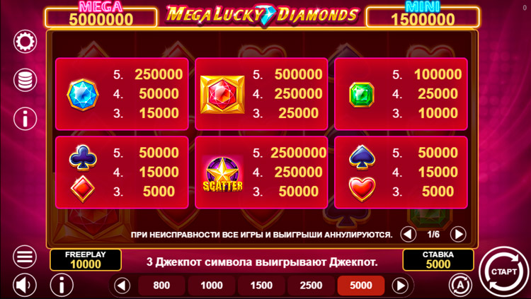 | Звезда (Scatter) | 50 000 | 250 000 | 2 500 000 |