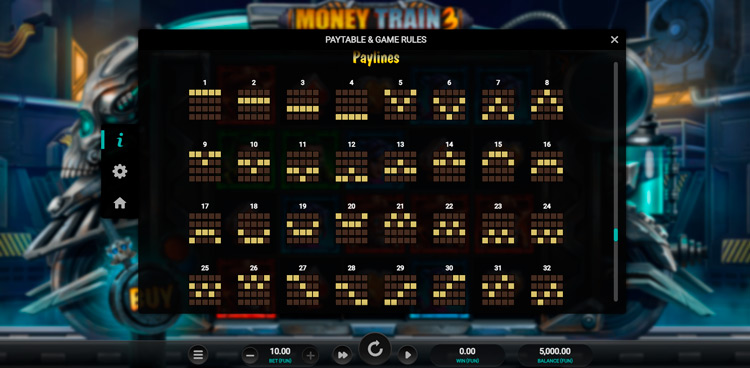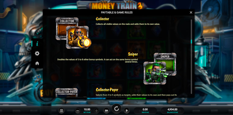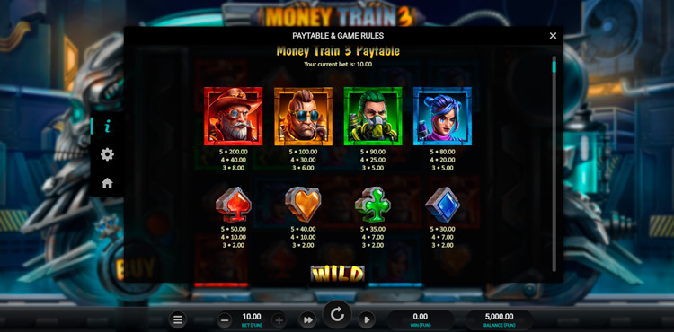 Таблица выплат Money Train 3